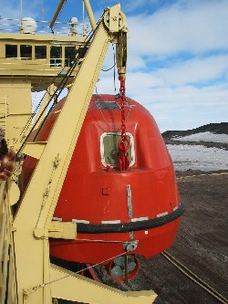 Полностью закрытая спасательная шлюпка.