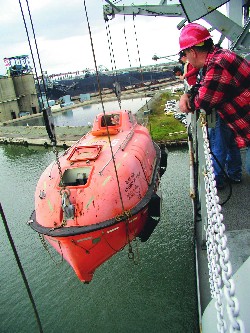 Тросовый спуск шлюпки.